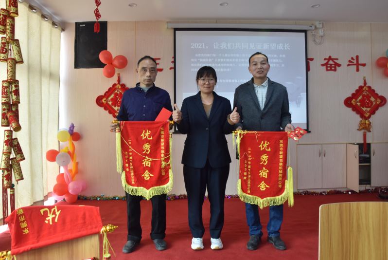 東莞市新望包裝機(jī)械有限公司2020年年度總結(jié)大會于2021年1月24日下午14:30在公司食堂隆重舉行。年終會議由行政部經(jīng)理張麗君主持。公司黨支部書記潘婉荷對黨支部成立5年以來的黨員活動和黨建工作做了匯報和總結(jié)。公司運營管理中心和技術(shù)創(chuàng)新服務(wù)中心兩套班子成員緊靠大會主題“征途漫漫,惟有奮斗”進(jìn)行總結(jié)與探討,盤點過往成績與不足,為公司2021年戰(zhàn)略規(guī)劃獻(xiàn)計獻(xiàn)策,常委班子成員都發(fā)表了熱情洋溢的講話。公司總經(jīng)理羅永輝做了《前程無坦途 唯有奮起爭》的年度工作報告。