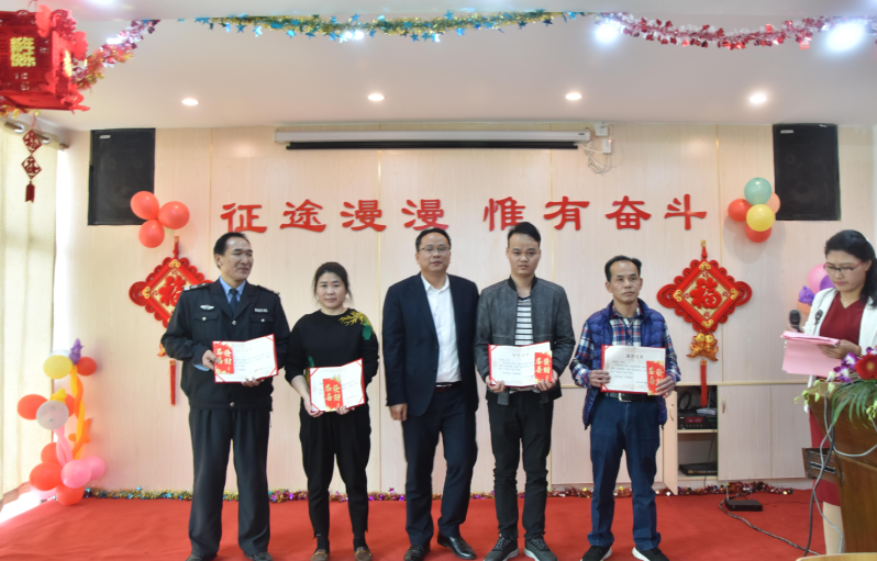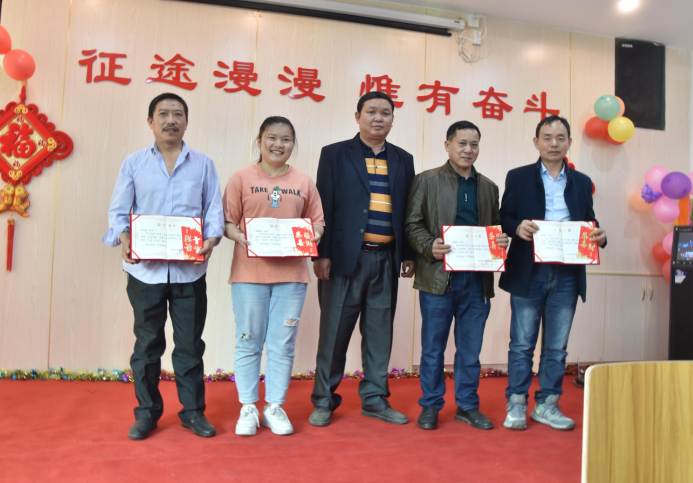 營銷部經(jīng)理伍綱強為邱高明、周美芳、黃榮先、龔超頒發(fā)先進(jìn)個人獎